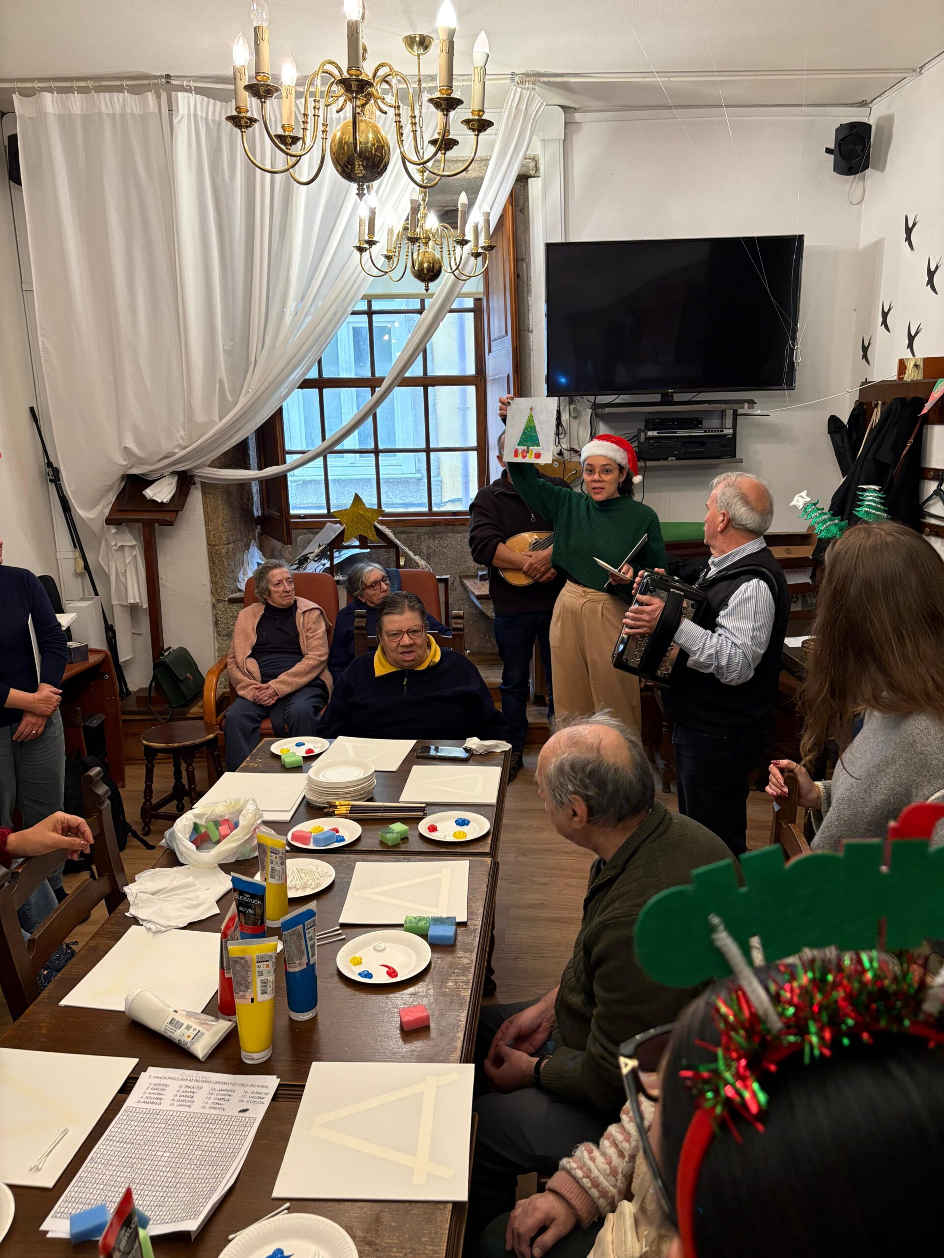 Foi uma tarde marcada pela partilha, boa disposição e convívio, com várias atividades recreativas, como momentos de pintura, música tradicional portuguesa e um lanche com doces típicos, que ajudaram a criar um ambiente acolhedor e cheio de sorrisos.